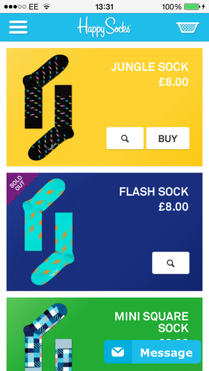 Here’s Happy Socks with its bold and exuberant flat design…