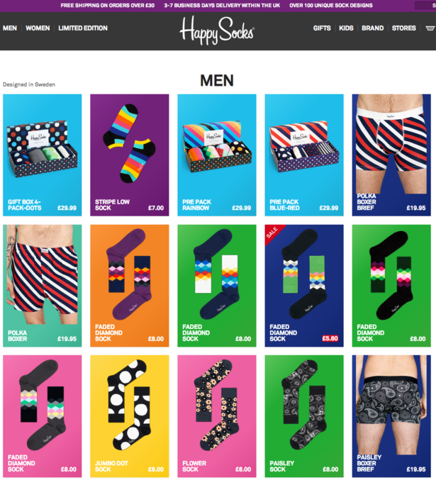 If you’re of a particularly bold inclination, I for one am hugely attracted to bright solid colours or anything neon, you’ll appreciate it when a site breaks out of the usual whites, greys and blacks of typical ecommerce design.