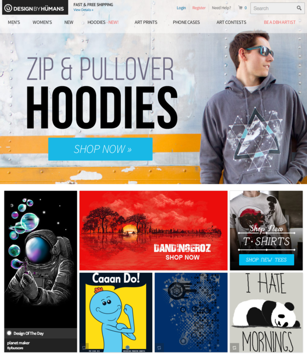 It’s very easy to constantly highlight Threadless and its fantastic looking ecommerce store, so let’s give another t-shirt brand a go. Welcome to the blog Design By Humans!
