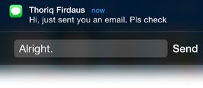 You no longer have to leave your home screen or a current running application. Reply instantly to an incoming message by pulling down on the iMessage notification and replying as you normally would.