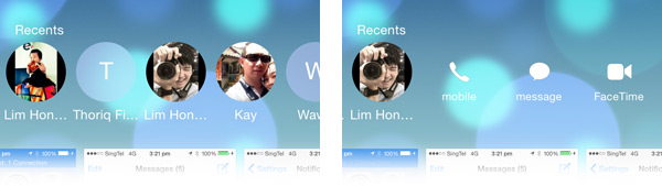 Now when you double click your home button, you aren’t just able to access the latest opened applications, you can also see a list of all the people that you recently contacted. Click on their profile picture to call, message or Facetime them.