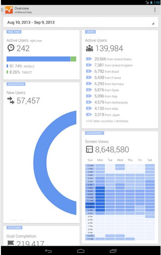 With this app, you can access all your Google Analytics Web and app reporting profiles through your Android devices. Get access to your analytical data from anywhere. Download the latest version of this app for free and keep an eye on your summary statistics from your home or office.