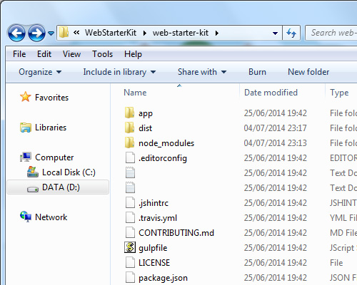 This command will copy all Web Starter Kit to your computer. This will also bring a new folder named “web-starter-kit” containing a number of folders including an app folder, Gulpfile.js, package.json and others. Next, we will install Web Starter Kit dependencies (files and libraries that are required for development). Simply run this command to install the dependencies: