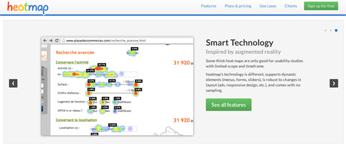 Heatmap is a tool that collects and displays real-time heatmap data for your websites. The heatmaps are quick to display and are constantly updated, so you can make changes to your website and see the effects of these changes immediately. Heatmap also implements an “augmented reality” approach to the interface, with a sidebar that provides real-time data, plus the ability for you to interact and browse your pages even while the heatmap data is visible on screen.