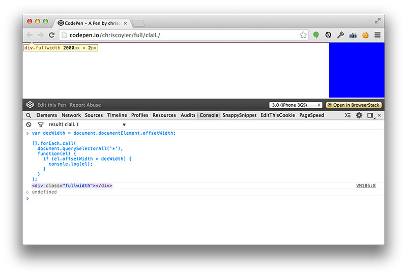 Sometimes horizontal overflow is more elusive. Like when it doesn’t trigger a horizontal scrollbar, but you can still expose the overflow by swiping with a touchpad or select-and-dragging.