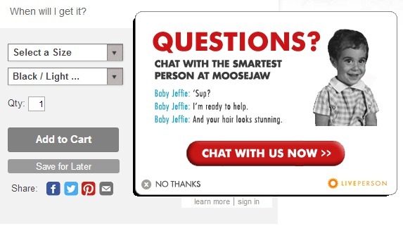In my previous article I mentioned your live chat service, which is a great mixture of self-effacement and flattery. Why did you decide to install live chat?