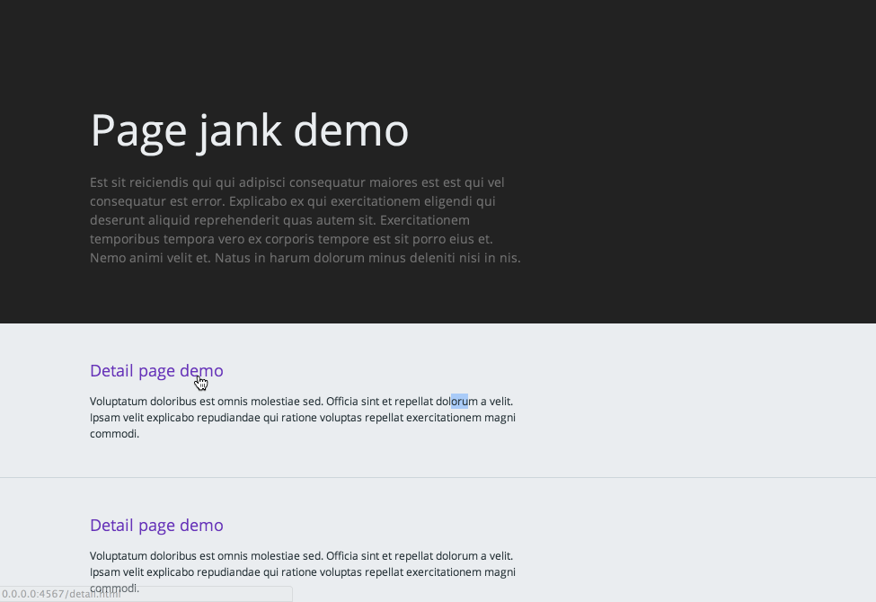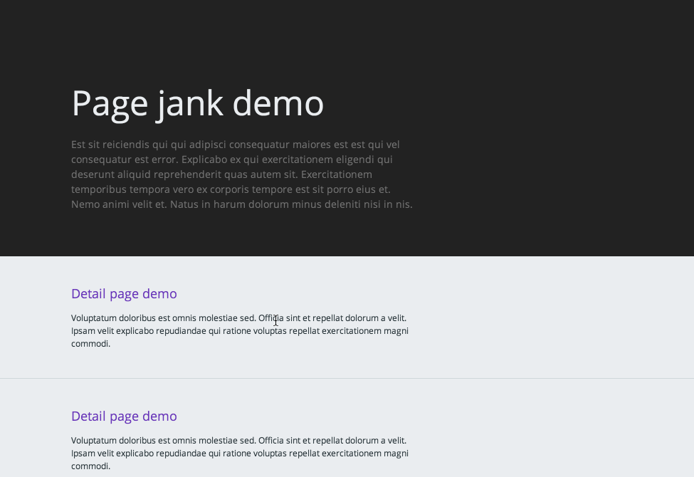 Let’s take a look at an example to see how we could start adding page transitions. In our demo layout we can see the white flashes and hard-cuts typical of web pages.