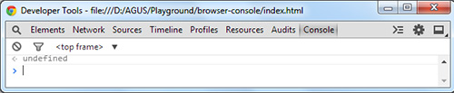 In Chrome, we can select View > Developer > JavaScript Console menu to bring up the Console. Alternatively, we can also use the shortcut key: Cmd + Option + J on OS X, and Ctrl + Shift + J on Windows.