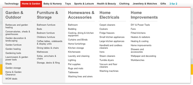 Overall the new design means the mega menu offers slightly less clarity, but can include a wider range of products.