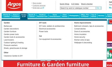 B&Q now has a mega menu within a mega menu – users must first select ‘Shop by department’, then choose the range they wish to buy from.