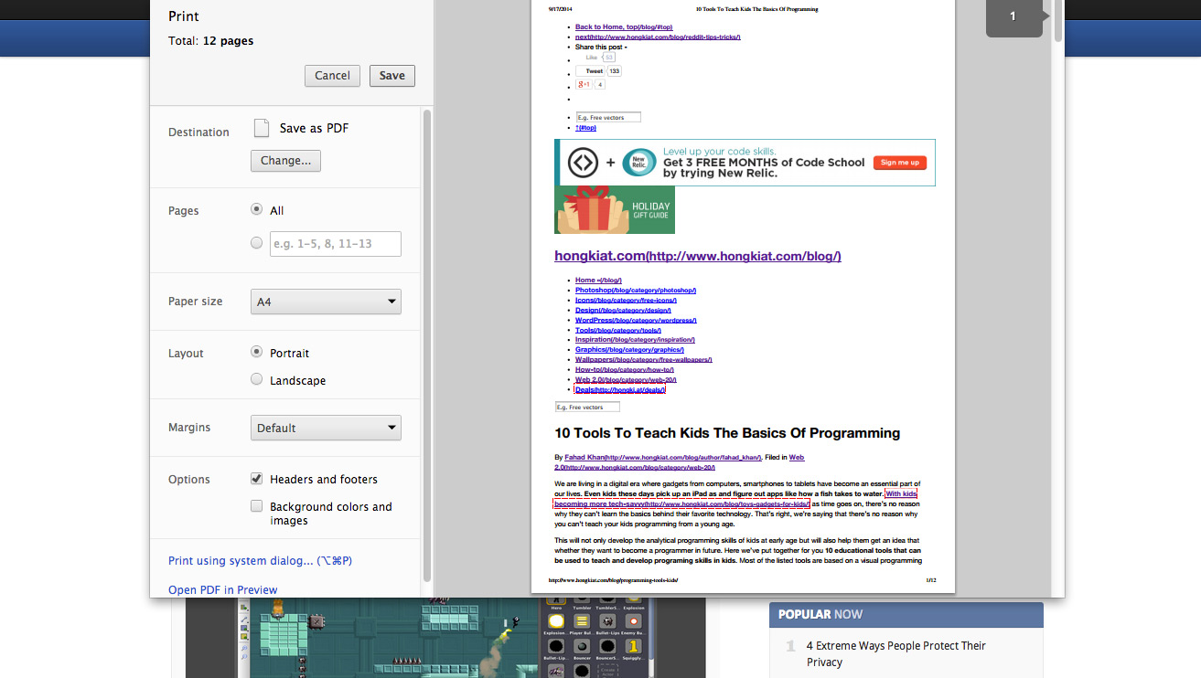 Broswers other than Chrome: You can do this by installing CleanPrint, which is a free add-on for browsers such as Firefox, Internet Explorer, Safari and yes, even Google Chrome. There are different options you can choose from and they include print, PDF, Text, Email, DropBox, Google Drive and Google Cloud Print.