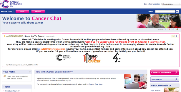 Cancer Research UK works across three social media platforms, including its specially created Cancer Chat.