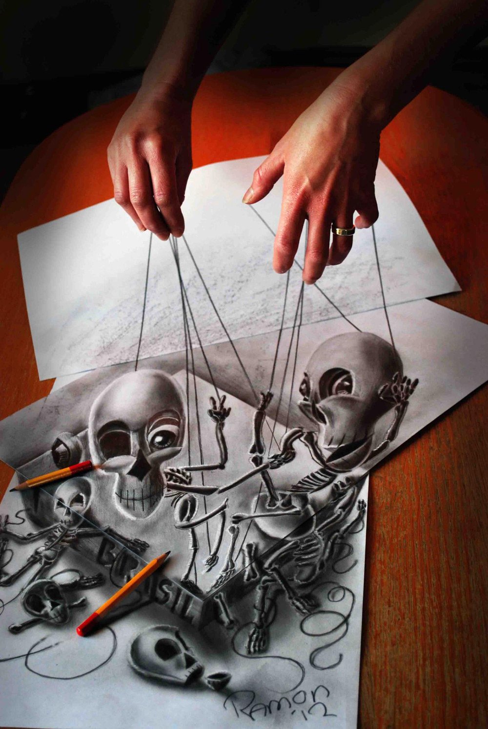 Good art can conjure up a various range of emotions but great art does something more. Ramon Bruin, who hails from the Netherlands, is a remarkably talented artist who creates optical illusions on paper. He’s even got a name for it, ‘Optical Illusionism.’ It is a combination of drawing, photography, and the right camera angle that manages to give it the effect that he desires.