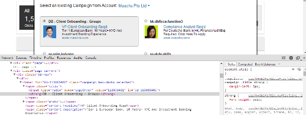 For our little problem, though, Inspect Element tells us when the random collection in front of us is the right set of four for the campaign we want to copy.