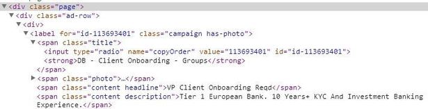 5. You should find yourself at a bit of code which has <div class=”page>.  That’s the page the campaign you want to duplicate is on.