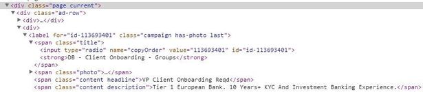 6. Now, go back to the collection of 4 ads and start clicking next – while keeping an eye on your ‘Inspect element’ window.