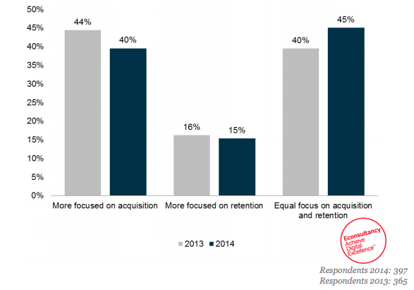 Yet marketers are still more focused on acquisition than retention. According to our own Cross Channel Marketing Report, only 15% of companies surveyed are ‘more focused on retention’.
